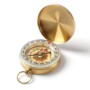 The brass compass in the image carries a warm golden shine, giving it an elegant and classic appearance that immediately evokes a sense of adventure and travel.