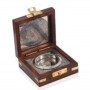 Together, the compass and its case create a powerful impression of history, adventure, and artistry, as if they belong to someone who once charted unknown paths.