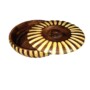 This image shows a beautifully handcrafted wooden box featuring a smooth round shape and a striking two-tone design. The body of the box is made from dark polished wood, giving it a rich and elegant appearance. Around the sides and on the lid, there are evenly spaced light-colored wooden strips that create a stunning contrast and make the design visually appealing. The lid, which is placed slightly open on top, has the same alternating pattern of dark and light wood, giving it a unique sun-ray or petal-like look. At the center of the lid, there is a small rounded knob that makes it easy to lift and handle. The shiny polished surface reflects light beautifully, highlighting the craftsmanship and smooth finishing. The inside of the box is spacious, making it suitable for storing various items such as dry fruits, snacks, sweets, jewelry, or decorative pieces. Its sturdy wooden construction ensures durability and long-lasting use. The handcrafted detailing shows the skill and precision of traditional artisans. The elegant pattern allows the box to stand out as a decorative centerpiece on tables or shelves. The combination of dark wood and light strips makes it suitable for both modern and traditional home décor. This piece can be used during festivals, gatherings, or for simply organizing small items at home. Its attractive design also makes it an excellent gift choice for special occasions. The rounded shape adds softness to its overall look, while the contrasting colors give it a bold and stylish touch. Its smooth texture and glossy finish make it feel luxurious in the hand. Every part of the box reflects meticulous craftsmanship and attention to detail. This wooden box blends beauty, utility, and artistic design perfectly. Overall, it is a functional, elegant, durable, and aesthetically pleasing handcrafted item that enhances the décor of any space.