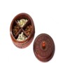 This image shows a beautifully handcrafted wooden dry-fruit box with a classic round shape that gives it a traditional and elegant appearance. The polished wood looks smooth and rich, highlighted by intricate hand-carved floral patterns that showcase fine craftsmanship. The lid, placed beside the box, is also decorated with detailed carvings and features a small rounded knob for easy handling. Inside the box, there are four evenly divided wooden compartments designed to store different dry fruits neatly. One section contains cashews, another holds almonds, the third is filled with raisins, and the fourth appears to store fox nuts (makhana). The natural colors and textures of the dry fruits enhance the charm of the box. Its round design makes it convenient for serving snacks, especially during festivals or gatherings. The box is not only practical but also visually appealing, making it an excellent choice for gifting. The strong wooden construction ensures durability, while the traditional carving reflects cultural artistry. This dry-fruit box serves both decorative and functional purposes and can also be used to store other small items. Overall, it is a stylish, unique, and culturally rich home accessory that blends beauty with everyday usefulness.This beautifully handcrafted wooden dry-fruit box features a smooth, polished round shape that gives it a rich and traditional appearance. The surface is adorned with intricate floral carvings that highlight the artisan’s skill and attention to detail. Its matching carved lid, placed beside the box, includes a small rounded knob that makes it easy to lift and handle. Inside, the box is divided into four neat wooden compartments designed to hold different dry fruits in an organized manner. One section contains crunchy cashews, another holds almonds, the third is filled with raisins, and the fourth appears to store fox nuts or makhana. The natural colors of the dry fruits enhance the charm of the wooden interior, making the box visually appealing. Its rounded structure allows it to be conveniently placed on any tabletop and makes it perfect for serving guests during festivals, gatherings, or daily use.