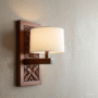 This elegant wooden wall lamp showcases a perfect balance of modern design and traditional craftsmanship. The lamp features a square-shaped fabric shade that emits a soft, warm glow, creating a cozy and soothing ambiance in any room. The base is crafted from high-quality wood with a rich brown finish, giving it a natural yet luxurious appeal. One side of the wooden panel includes a beautifully carved geometric pattern, adding an artistic touch that enhances its overall aesthetic charm.